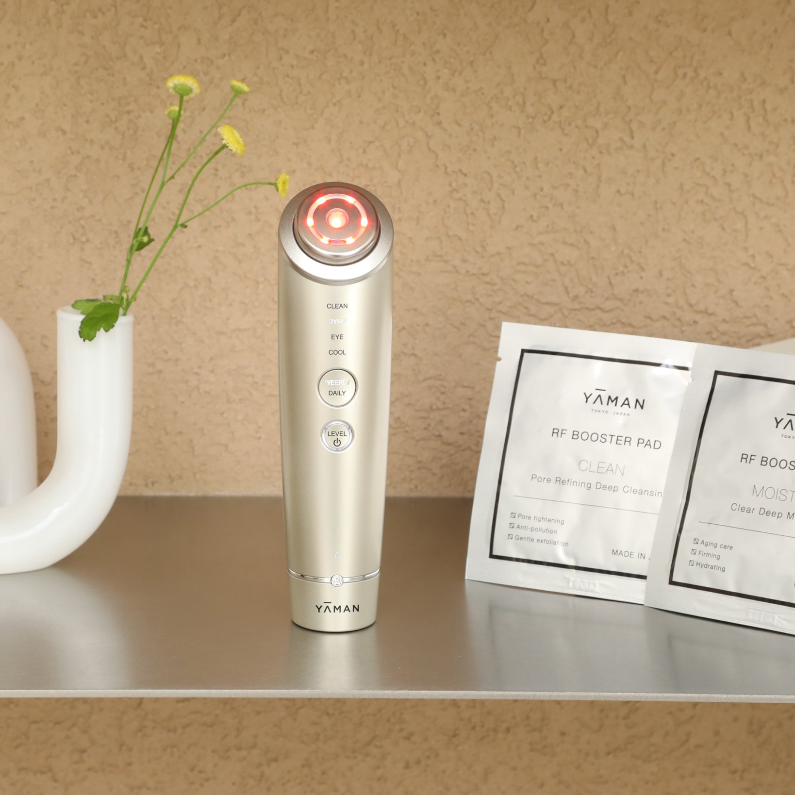 Warms the skin with RF and removes deep-seated impurities and excess sebum using ion technology. Prepares the skin to absorb active ingredients more effectively.