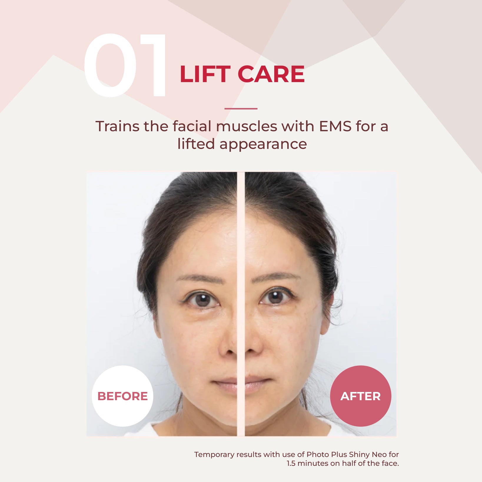 Stimulates facial muscles with EMS to help tone, firm, and lift the skin-to help improve dark circles, fine lines and wrinkles around eyes.