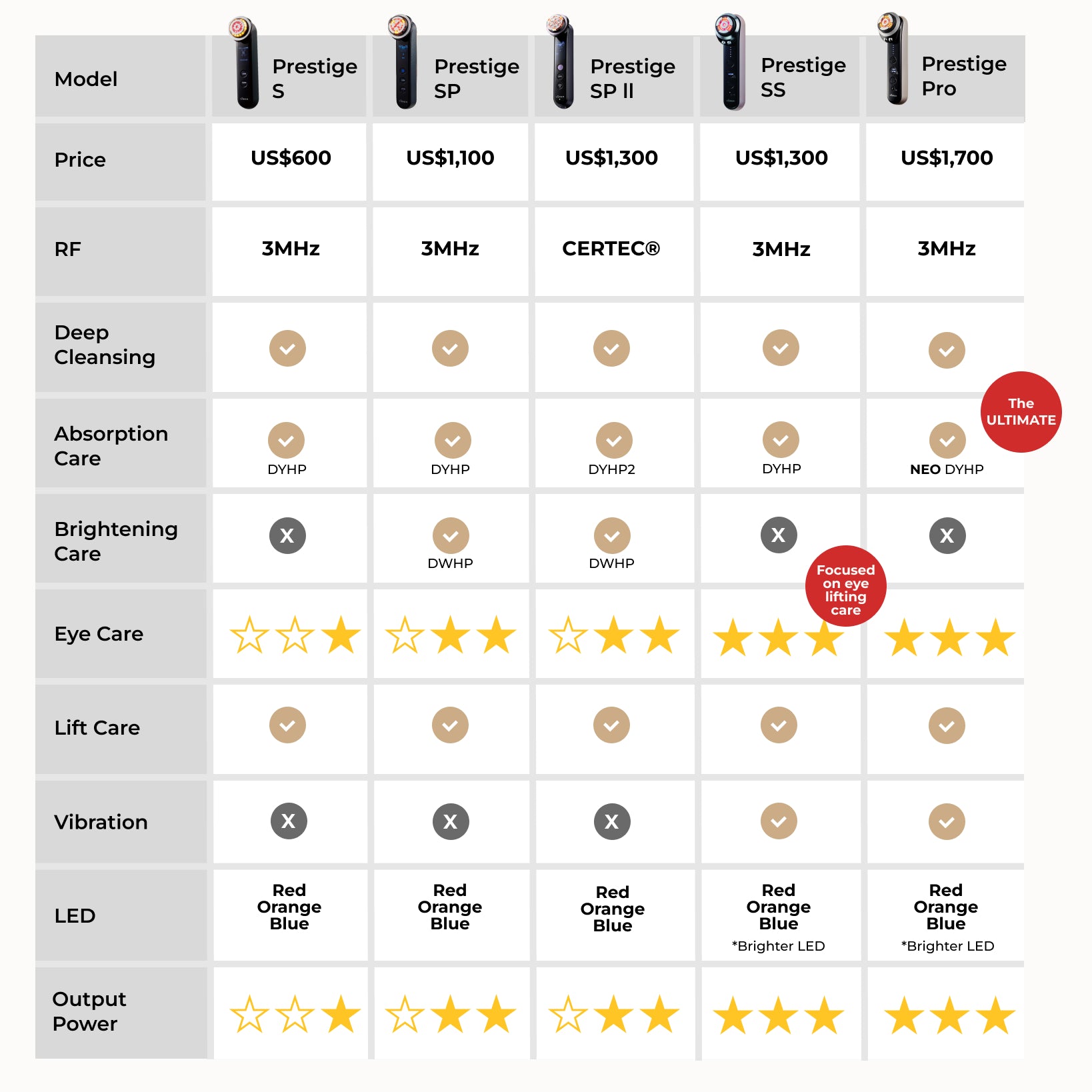 - Technology: RF(3MHz), NEB , Ion Cleansing, Iontophoresis, EMS, Red/ Blue/Orange LED, Microcurrent, Eye Lift RF, Cooling